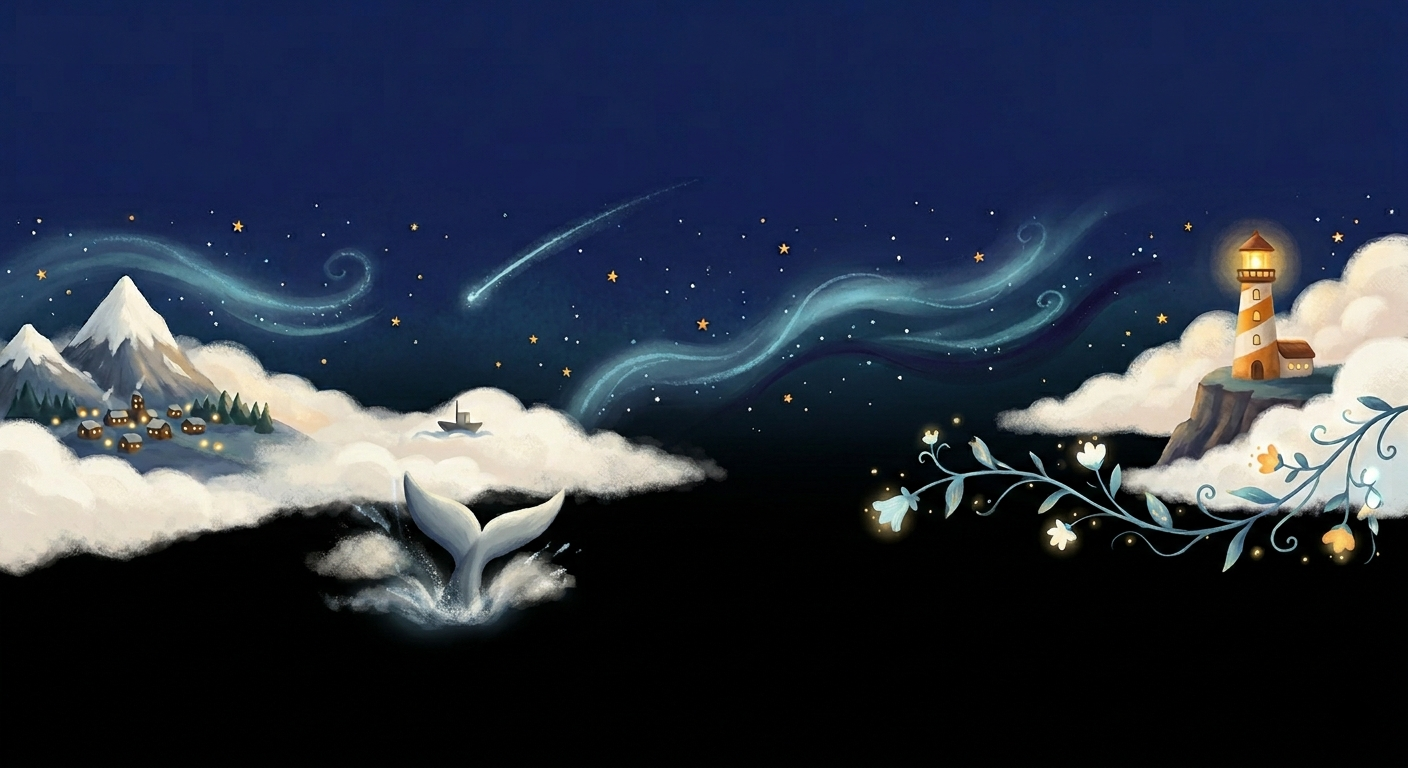 The Lighthouse gives you Star Charts, progress reports, and A Letter from Hoshi: a personal summary at the end of every world. In English and Japanese. Everything included. Always.